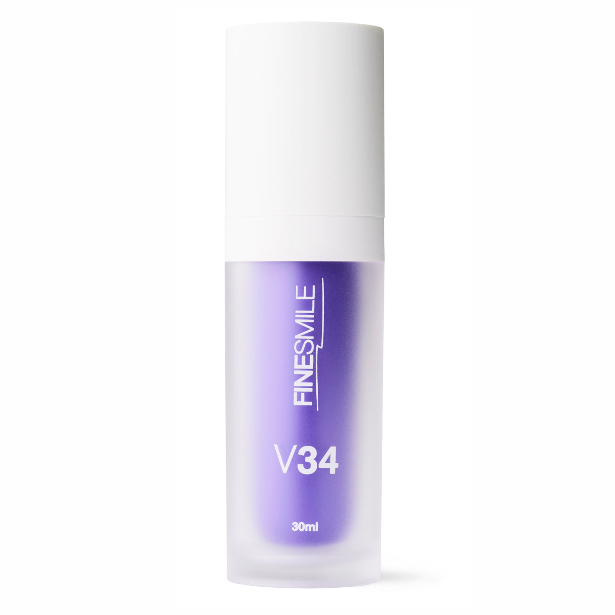 V34 utnyttjar vetenskapen bakom färgkorrigering för att ändra utseendet på dina tänder. Blandningen består av en perfekt balans mellan två vattenlösliga färger som ger en djup lila ton. V34 är perfekt för dig som vill ha ännu ljusare tänder efter en tandblekning, eller som redan har mycket vita tänder som inte behöver en fullständig behandling med våra tandblekningsset. Oxidationen från vårt tandblekningsset ger dig ljusare tänder med högre kontrast. Därefter ger V34 en bättre balans och svalare toner på tänderna för att visa en ökad nyans av vitt.